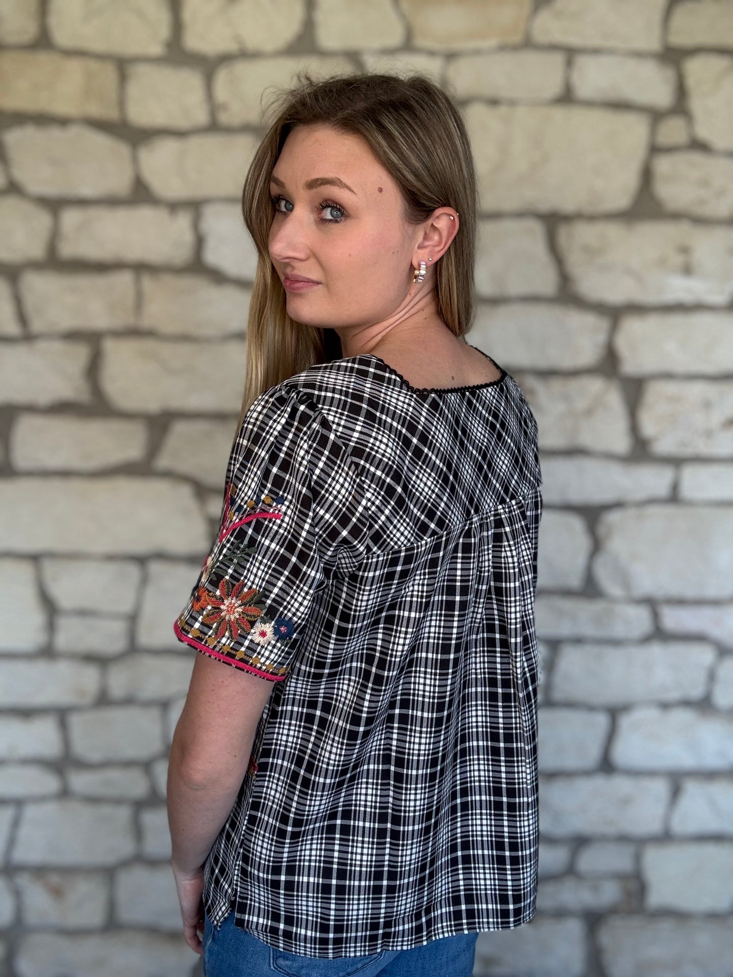 Get ready to turn heads with the Amanda Top! This playful top features a square neckline and trendy embroidered details, while keeping you cool and stylish with its short sleeves. The plaid pattern adds a touch of uniqueness to this quirky and fun top. Perfect for a day out with friends or a casual date night.