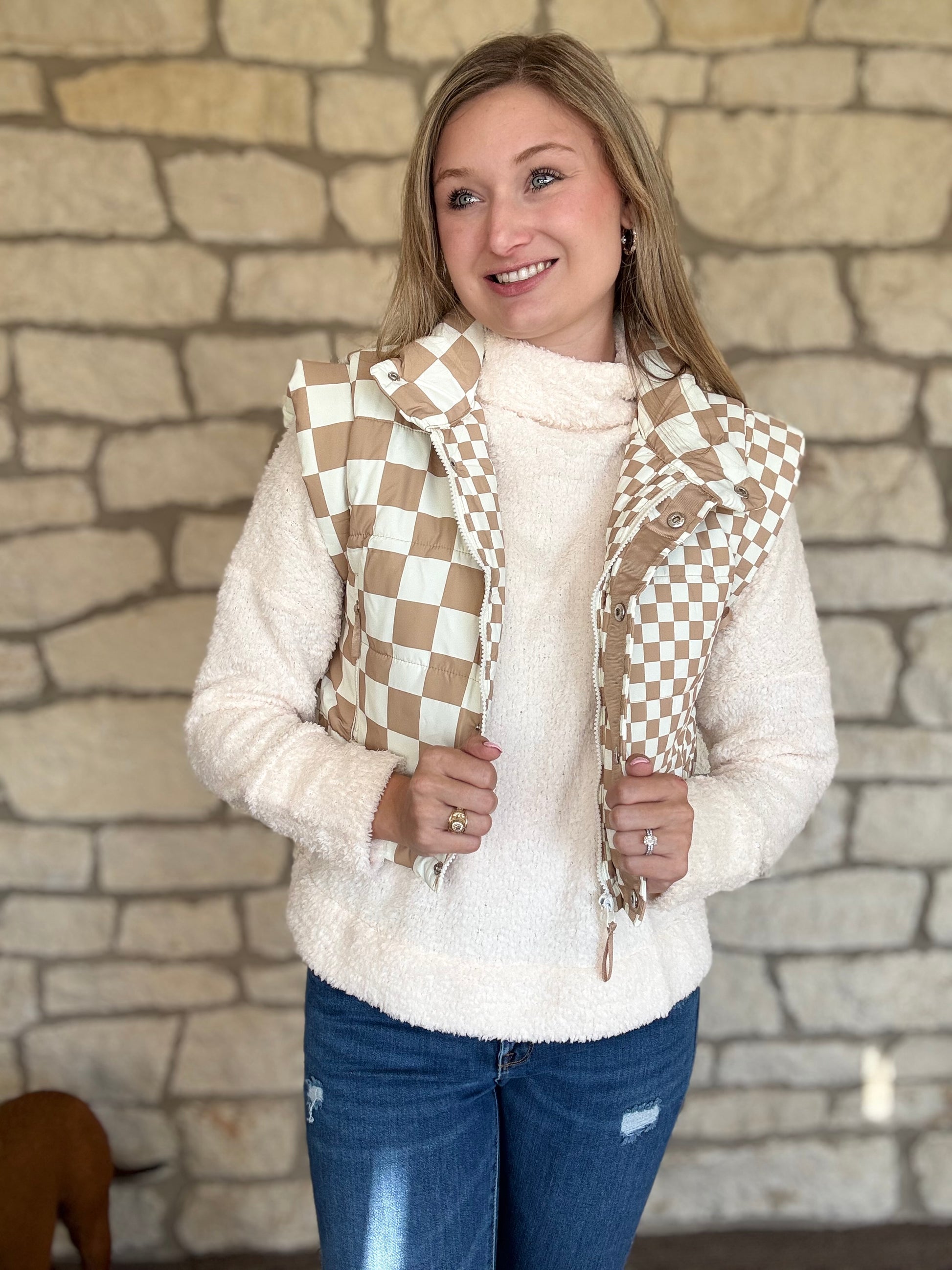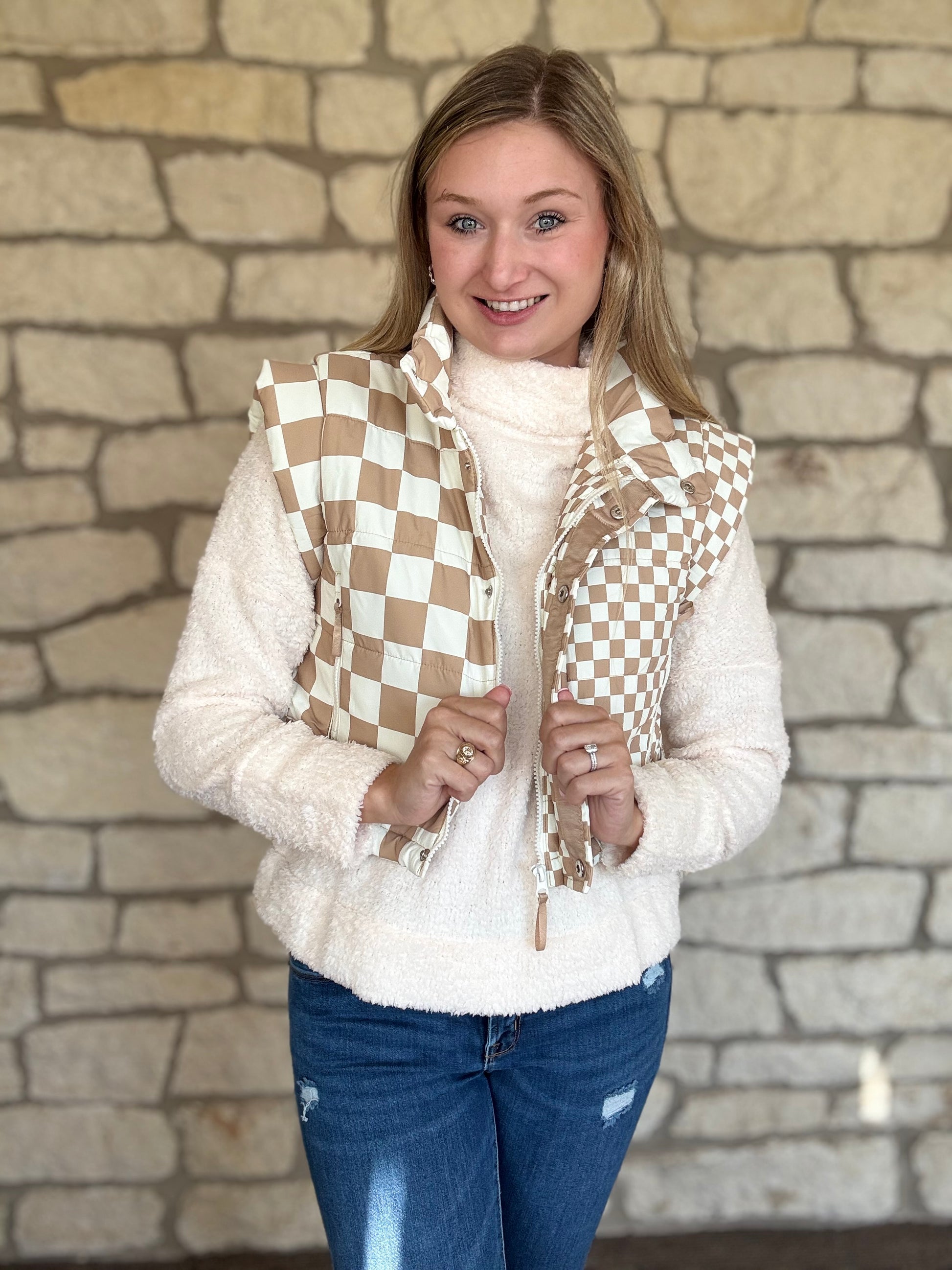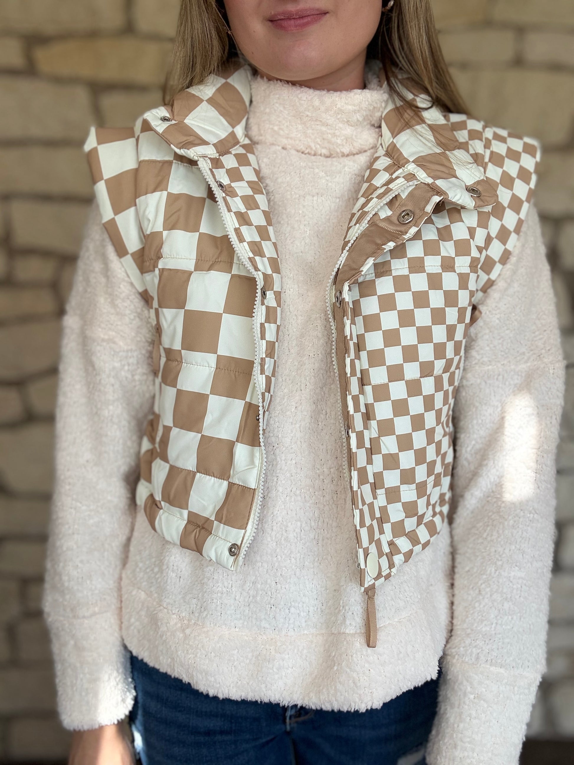 - Vest is paired with our Fuzzy sweater.