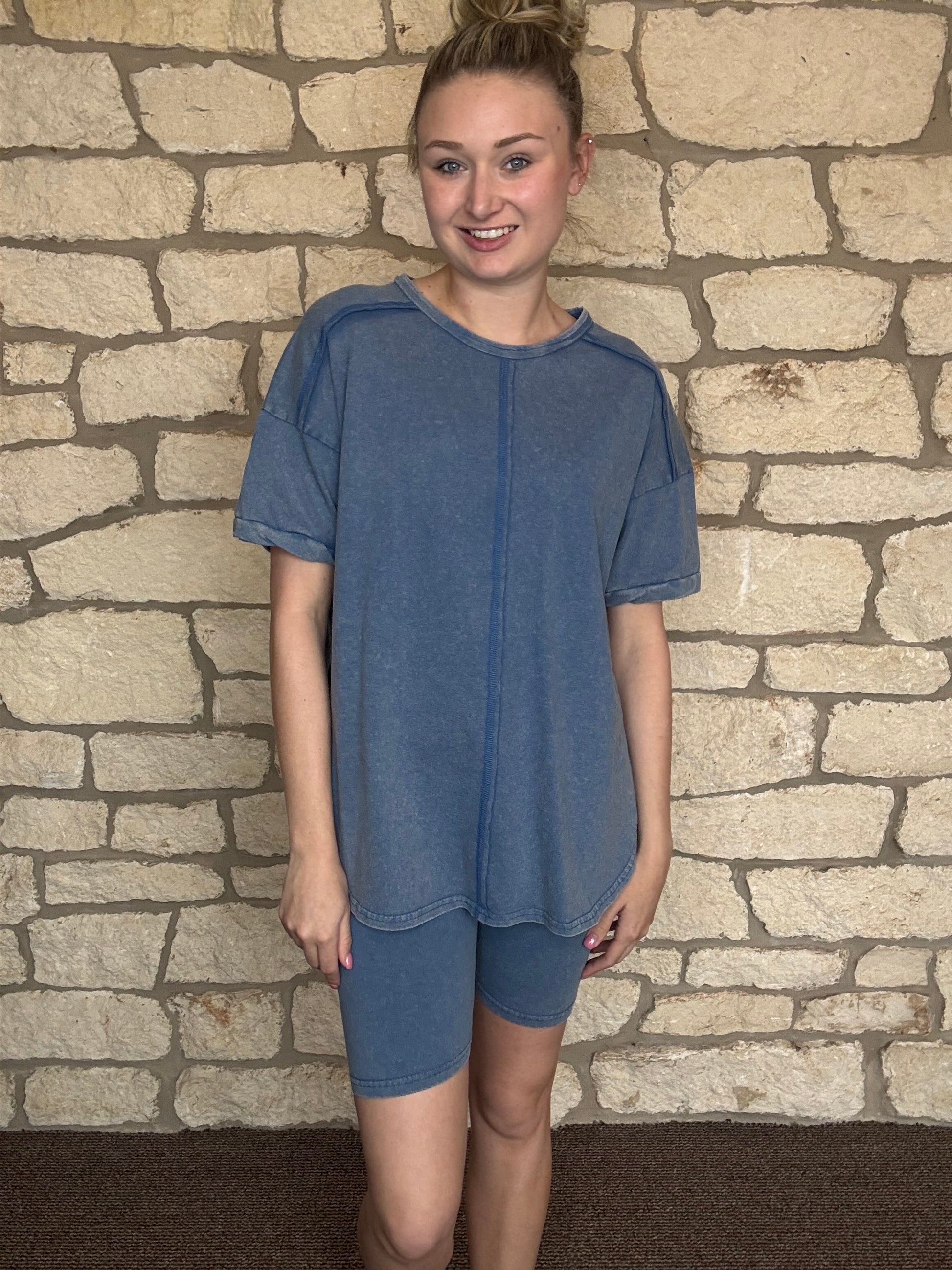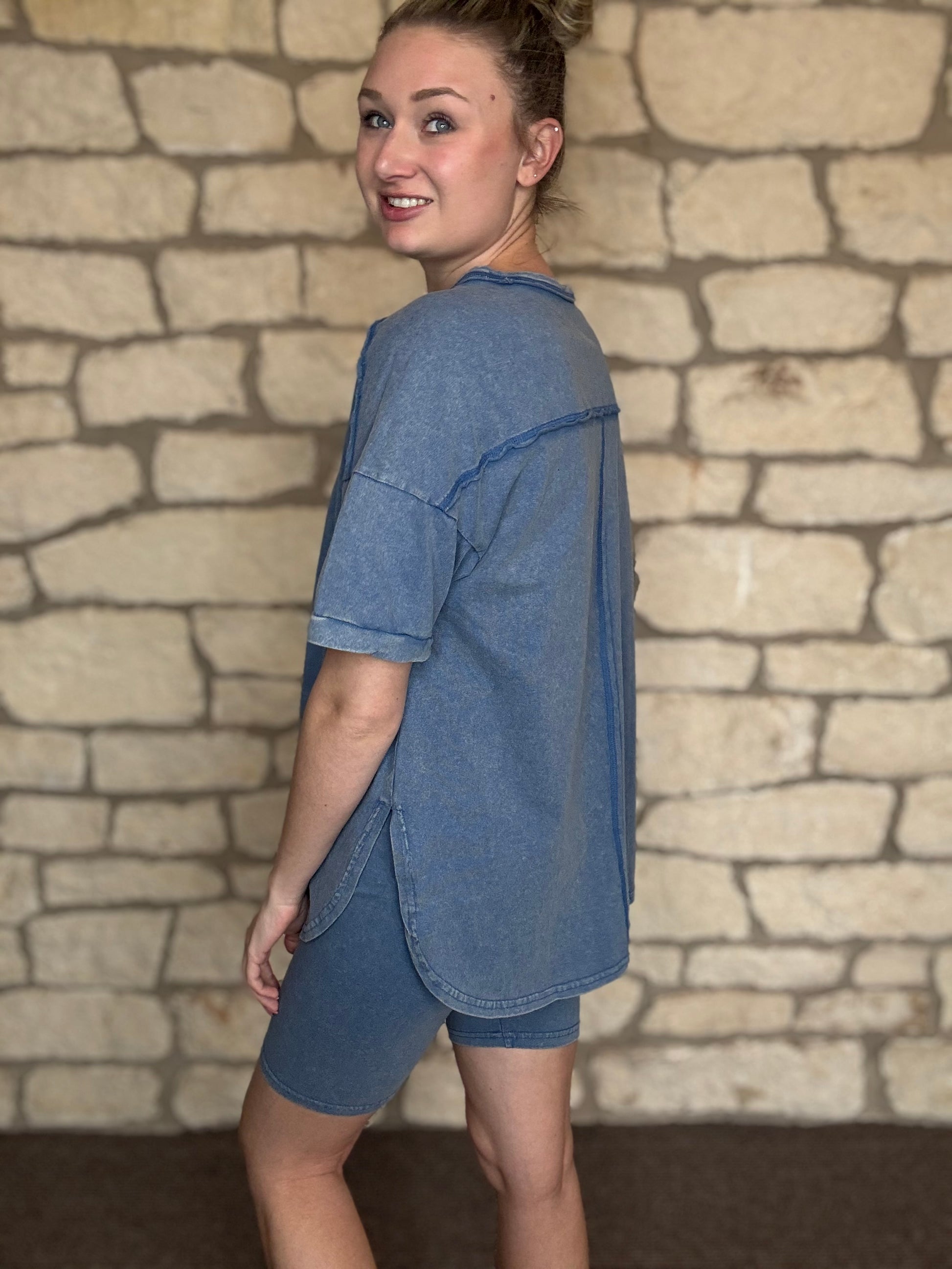 Stay stylish and comfortable with our Going For A Walk Set! Made with a washed fabric and stretchy shorts, this lounge set is perfect for any casual outing. The comfy top adds an extra touch of coziness to complete the look. Get ready to turn heads on your next walk!