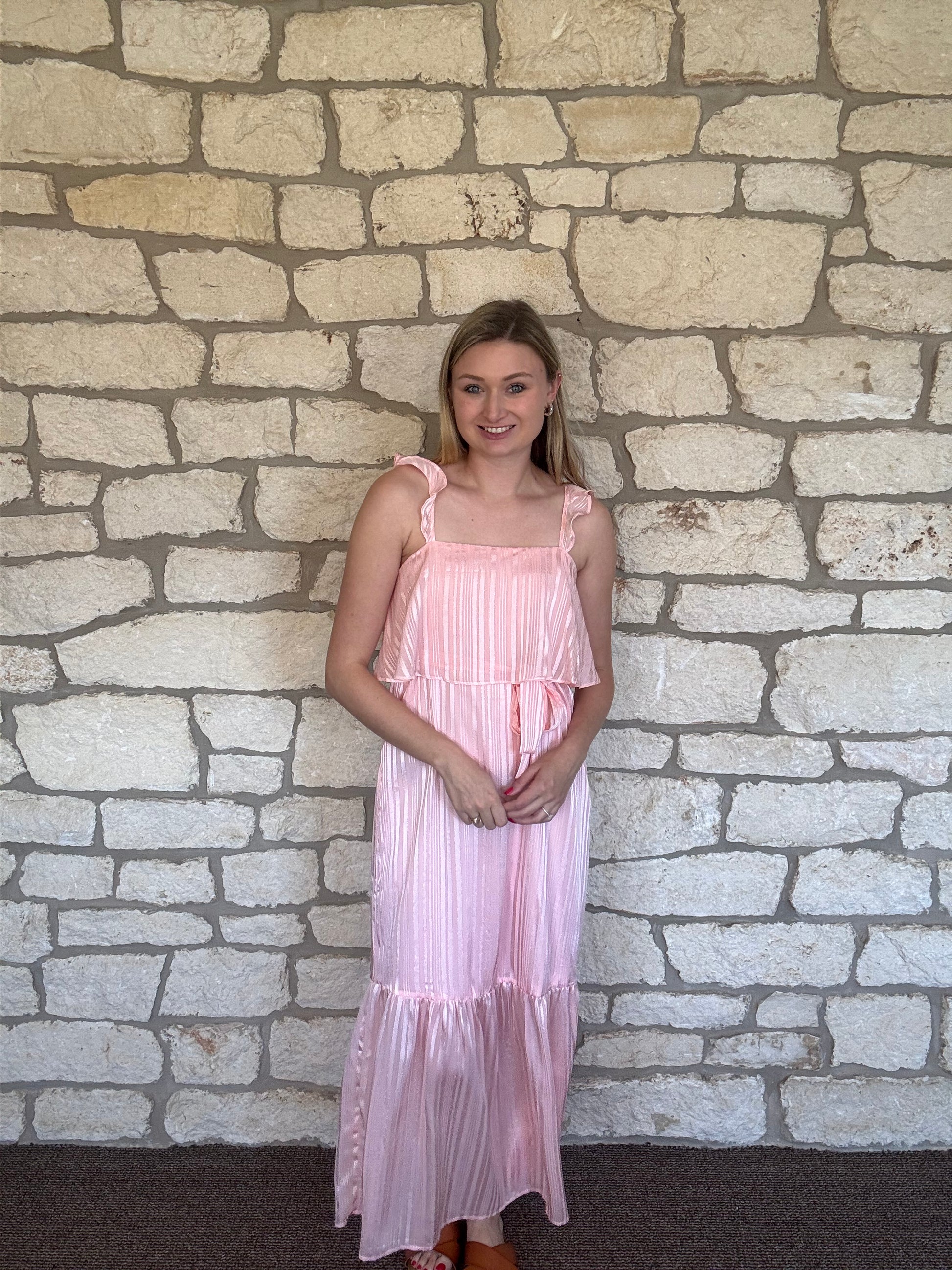 Get ready for a fun Sunday in our light pink maxi dress! Breeze through the day in this flowy and comfortable dress, complete with a tie waist for the perfect fit. A must-have for any quirky fashionista!